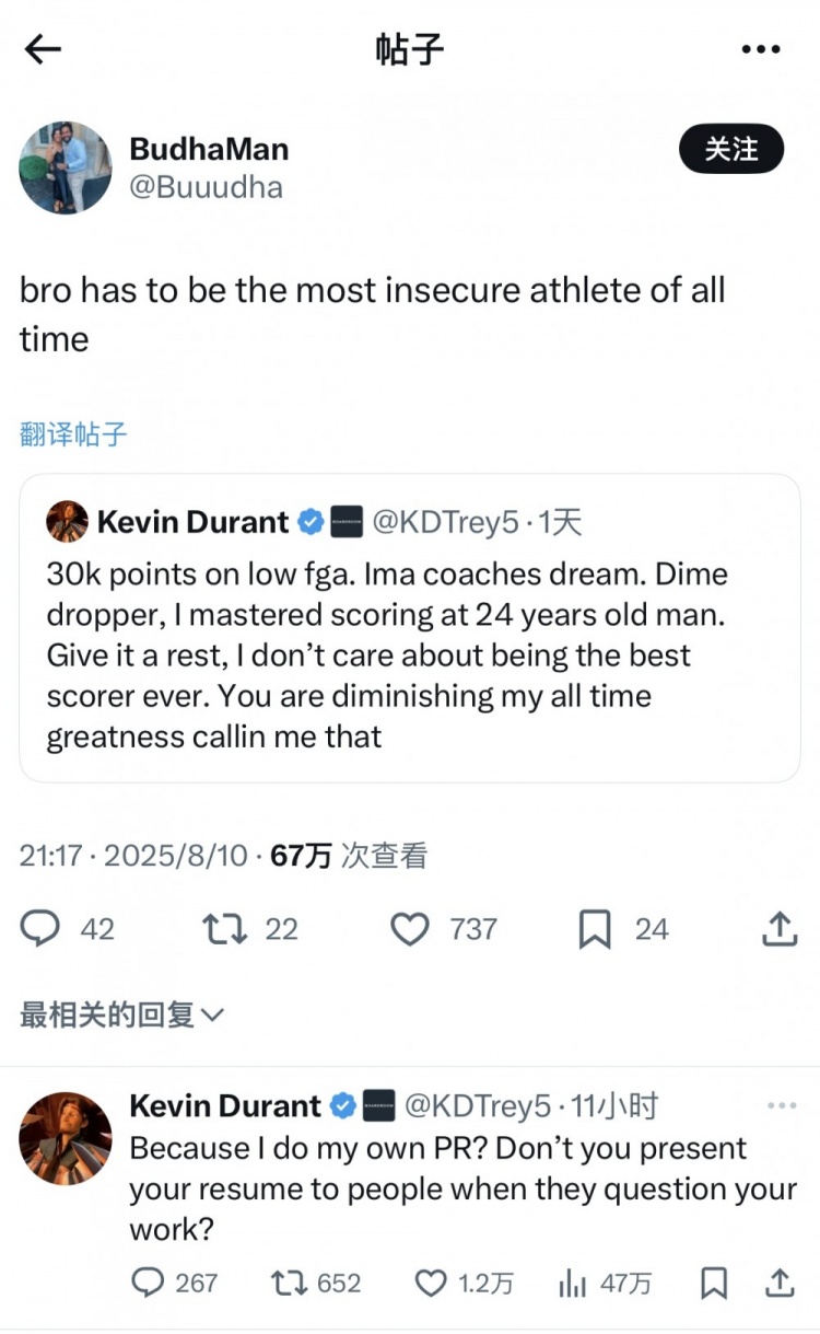 KD对网民做出了回应:我得到30,000分 命中率较小 我已经掌握了24岁的评分技巧