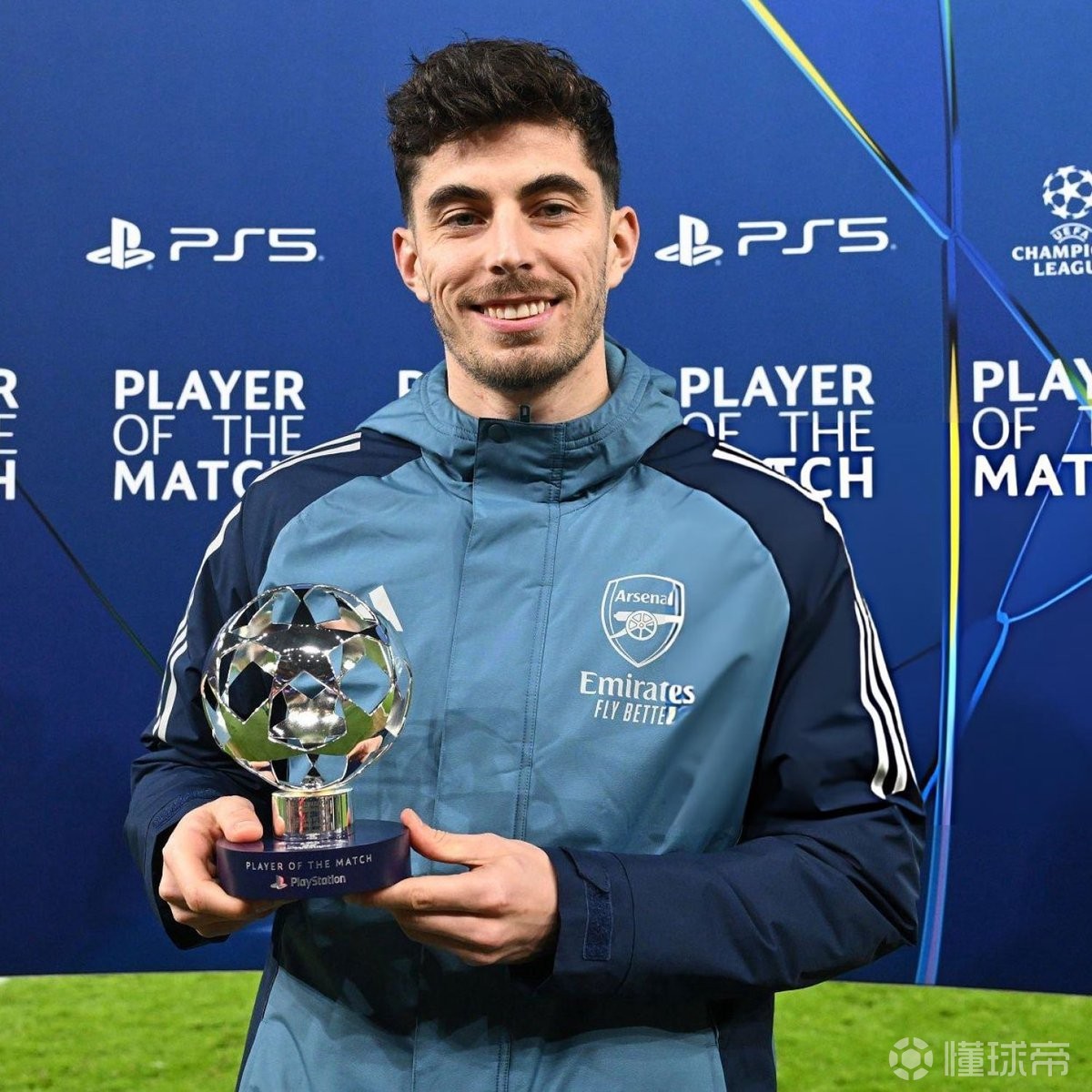 欧冠联赛阶段第8轮,阿森纳主场3-2击败阿拉木图凯拉特,此役传射建功的哈弗茨当选欧冠官方全场最佳球员。