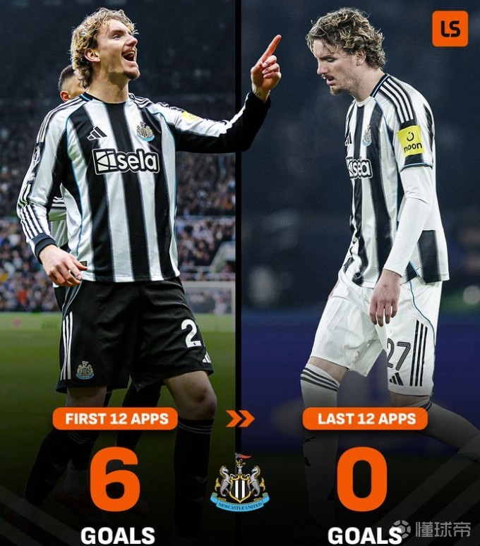 据统计,沃尔特马德在代表纽卡斯尔联的前12场比赛中打进6球,但在过去的12场比赛中,他颗粒无收。他上一次进球还是在英超第17轮对切尔西的比赛中上演的梅开二度。